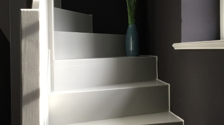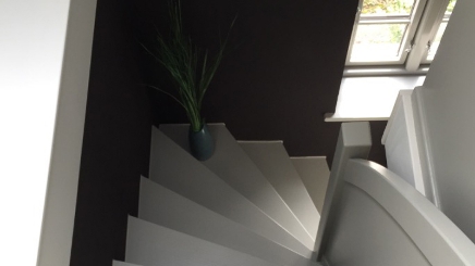 die friesische Holztreppe in den zweiten Schlafbereich - das Studio