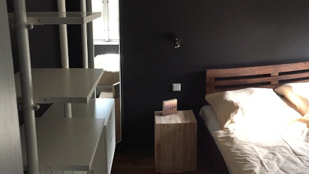Doppelbett-Schlafzimmer mit Holzgestell